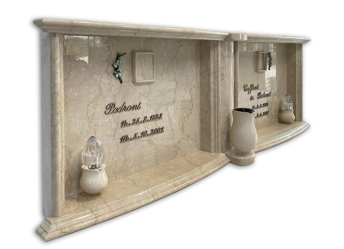 Fulcro nevralgico della nostra produzione, l’arte funebre proposta da Pontini Marmi si distingue per la totale personalizzazione di ogni opera. Urne funerarie, tombe di famiglia, statue, rivestimenti di cappelle e altre lavorazioni vengono scolpite ogni volta da zero secondo i termini pattuiti con il cliente. Le nostre maestranze artigiane si occupano di tutto, dal sopralluogo in cantiere al bozzetto preliminare, fino al trasporto sul posto e alla posa. Un ciclo di lavoro completo e su misura, eseguito nel pieno rispetto delle tempistiche e delle richieste della famiglia, dove la creatività affiora in ogni dettaglio e particolare. La scelta migliore per rendere omaggio alla memoria di un defunto, ristrutturare la tomba di famiglia o predisporre il luogo di sepoltura con opere destinate a soddisfare desideri e ideali destinati a durare in eterno.